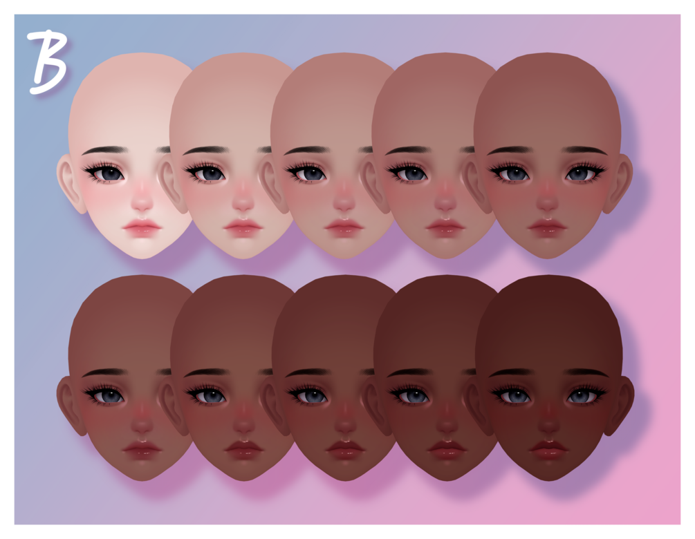 ♥─ 2 Different face texture versions, 10 skin tone variations each (Face Textures A, Face Textures B)