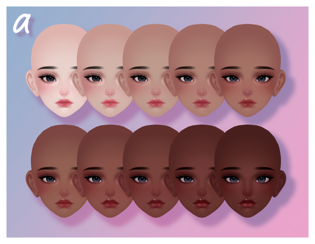♥─ 2 Different face texture versions, 10 skin tone variations each (Face Textures A, Face Textures B)