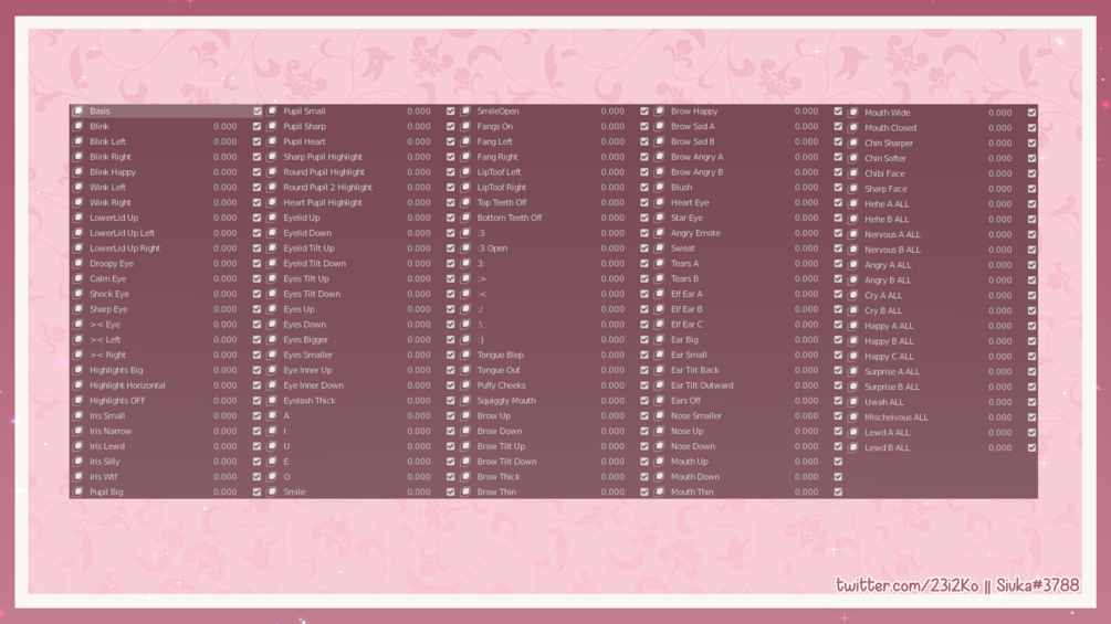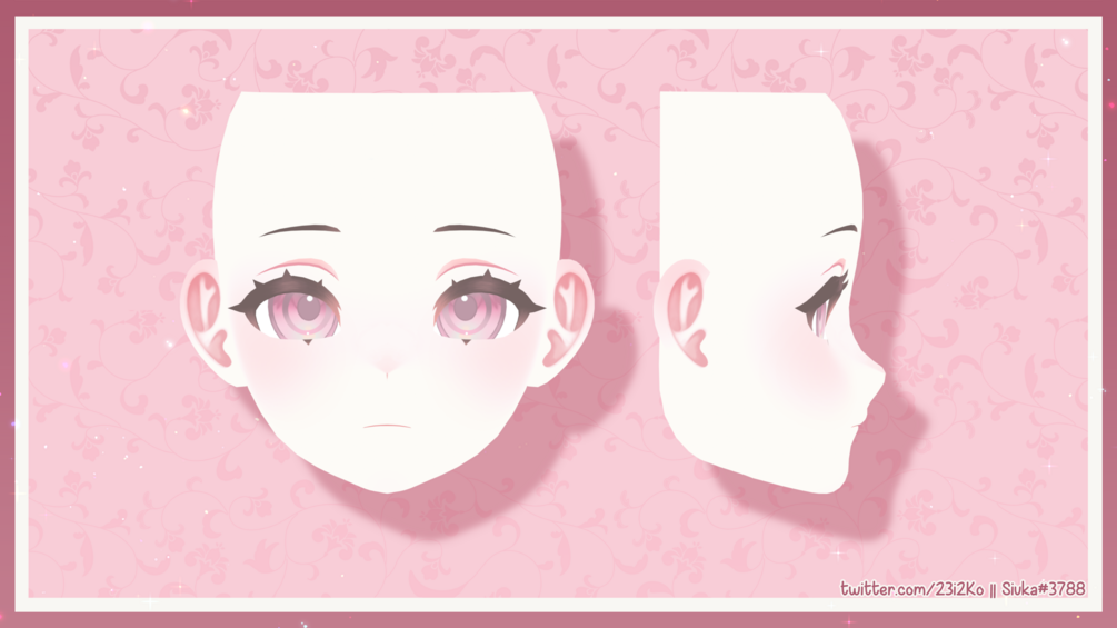 Second head woo!! This is an improved version of the very first head I ever made from scratch+used on personal avatars (some pics of it here for ref: https://twitter.com/23i2Ko/status/1526720631324266496), which was never publicized. The blendshapes for the mouth and eyes are much more in-depth, with general all-over improvements to anatomy and topology so it looks better from different angles. Compared to the Lilie head, this head also has slightly better topology, and a ton more blendshapes so the face is SUPER customizable. I also wanted to include a better way to edit textures + include makeup, so this one comes with Photoshop and Clip Studio Paint files, as well as emission maps.