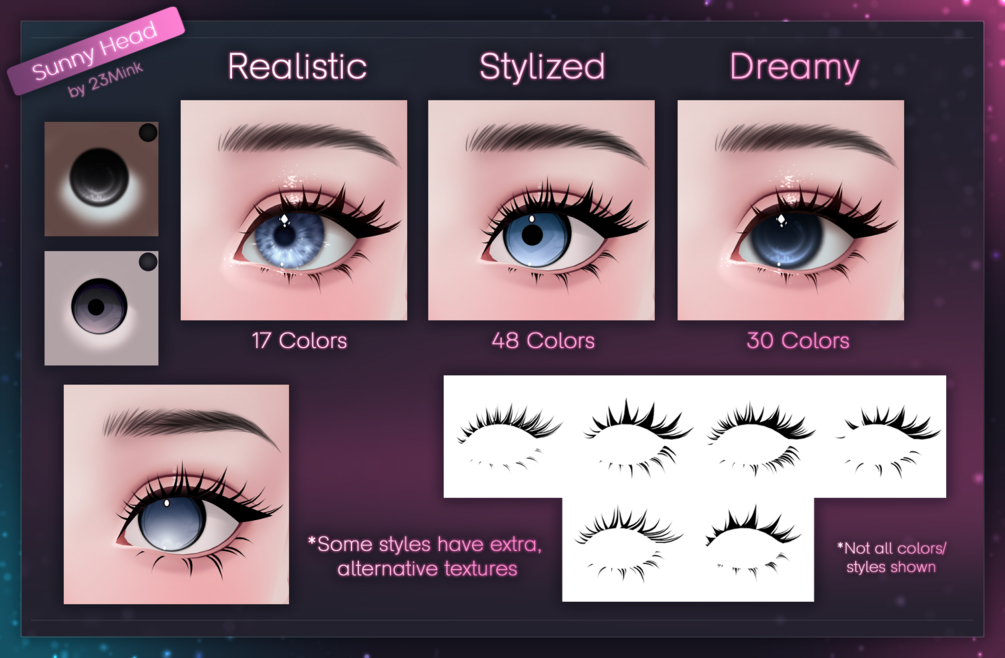 ♥─ 3 Eye Texture Variations (Stylized: 48 colors, Realistic: 17 colors, Dreamy: 30 colors)