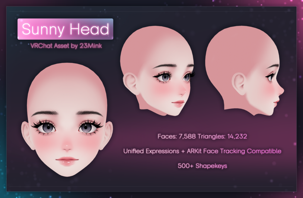 ♥─ Includes Unified Expressions and ARKit Face Tracking shapekeys (Recommended for use with Jerry's VRCFT Templates)